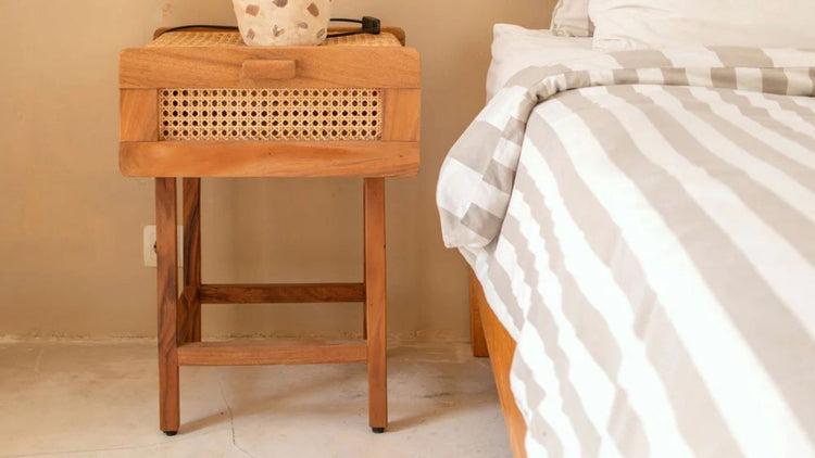 Een stijlvol nachtkastje mag niet ontbreken in de slaapkamer. Het biedt niet alleen handige opbergruimte, maar vormt ook een mooie aanvulling op je boho interieur. Gemaakt van natuurlijke materialen zoals rotan en (trembesi-)hout, zorgen onze unieke designs voor een warme en sfeervolle uitstraling.