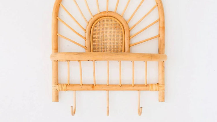 Een wandopberger aan je muur is de ideale manier om kleinere spullen netjes op te bergen en een boho stijl toe te voegen aan je interieur. Het biedt ruimte voor sleutels, hoeden, zonnebrillen, jassen en meer, en creëert een warme, ontspannen sfeer.